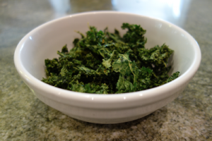 5. On roasting pan: Place kale pieces in one layer. Take care not to pile pieces on top of each other.