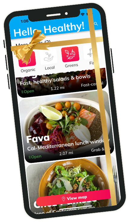 They’ll enjoy our nutritionist-curated mobile app filled with healthy, sustainable, delicious options for dining out or ordering in – all per holistic nutrition standards.