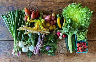 Produce from the restaurant’s farm(s) and specialty pantry goods – CSA style.